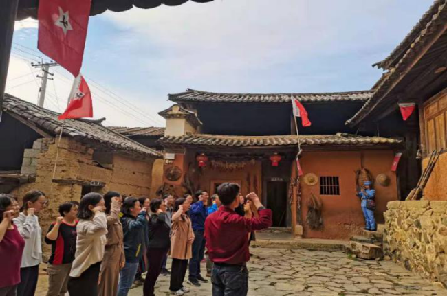 在红军纪念馆里,在庄严的党旗下,胡绍红老师带领全体党员教师重温入党誓词,使每个共产党员不忘责任和使命,更加坚定自己的理想信念。大家参观当年红军战士路过此地的住所,听着车辚老师对红军长征过大理历史的详细讲解,不由心生敬意,由衷地敬佩红军战士坚定的革命精神。